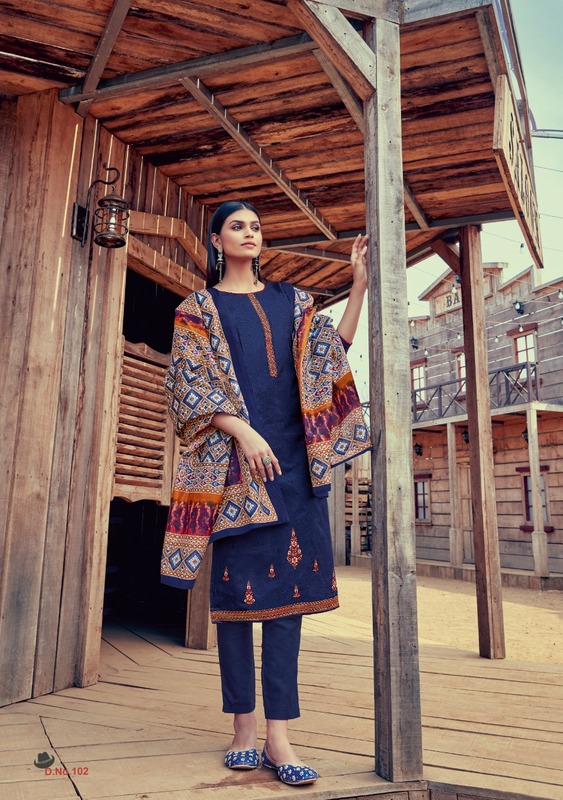 | Top Fabric | Pure Cotton Printed With Fancy Embroidery Kashmiri work 2.50 Meters |